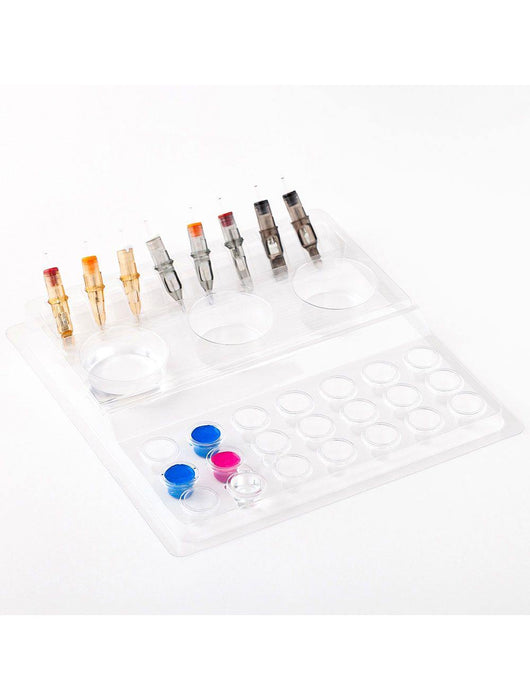 Easy Tray are made of Medical Grade Plastic and combine rinse cups, ink caps and cartridge slot holds all into one. Easy trays make your setup and breakdown much easier and cleaner. Keep your tattoo cartridge needles organized with the option to keep your needles wet with the built-in reservoir.